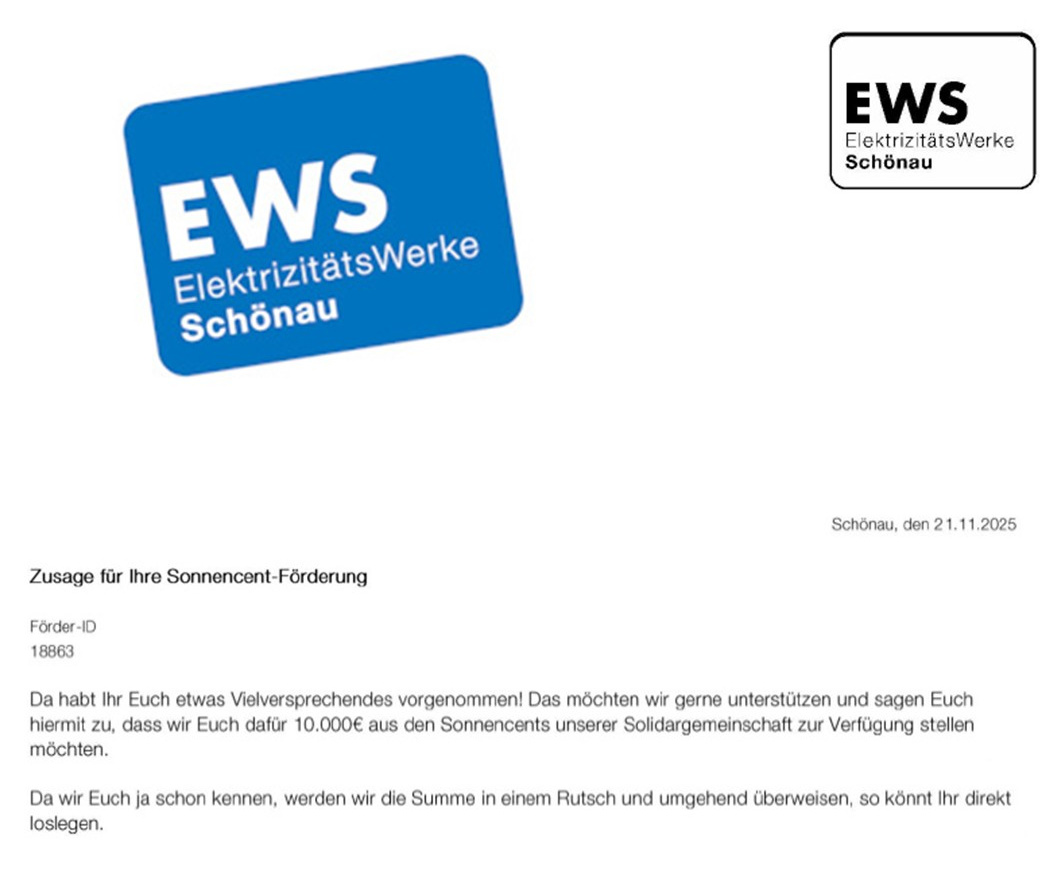 Erneute Förderzusage der EWS.